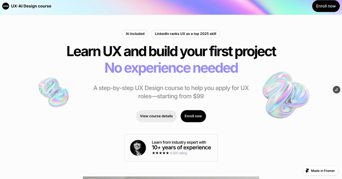 - Up to 3 emails per month on anything related UX/UI Design advice
